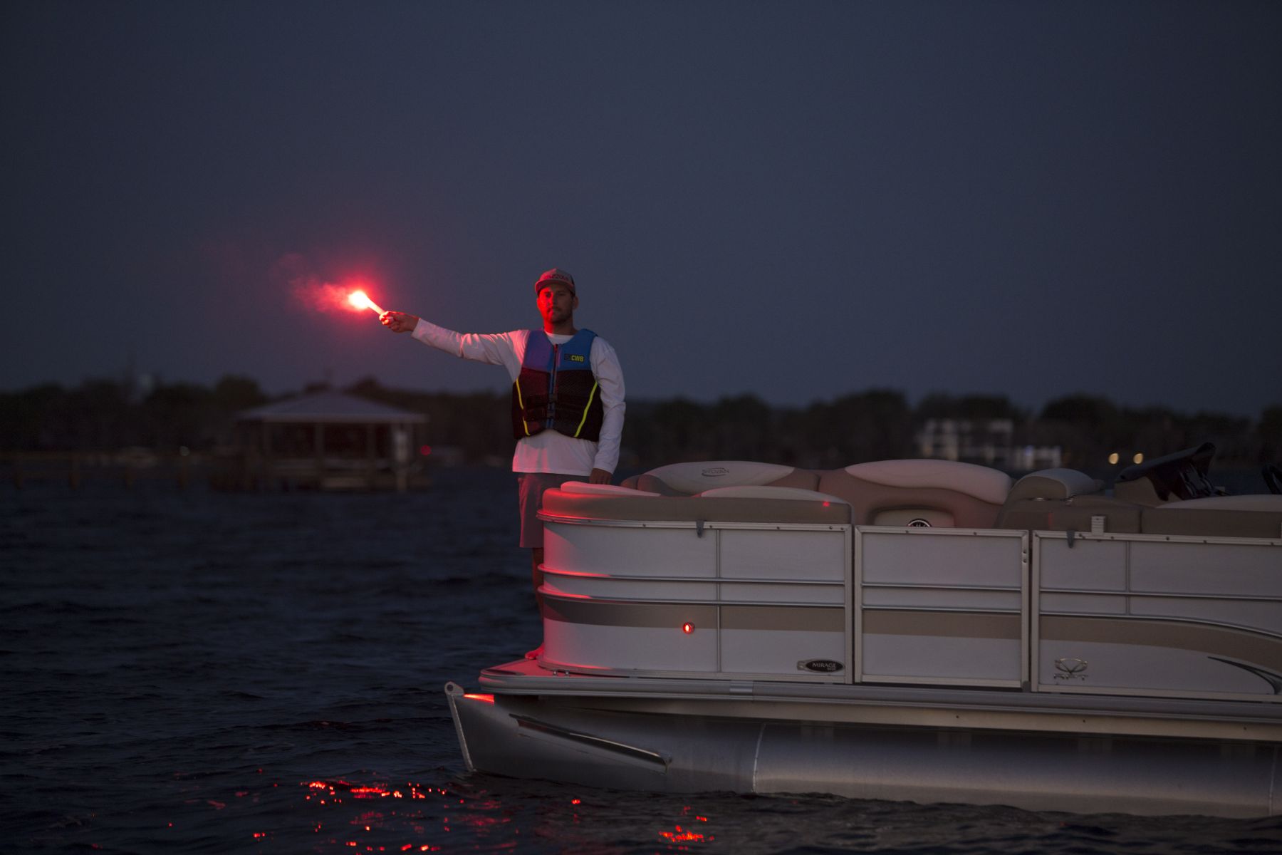 Safety in the Dark: Royalty-Free Photos of Boat Flare Use at Dusk