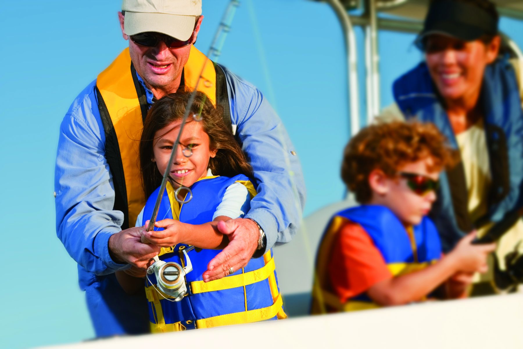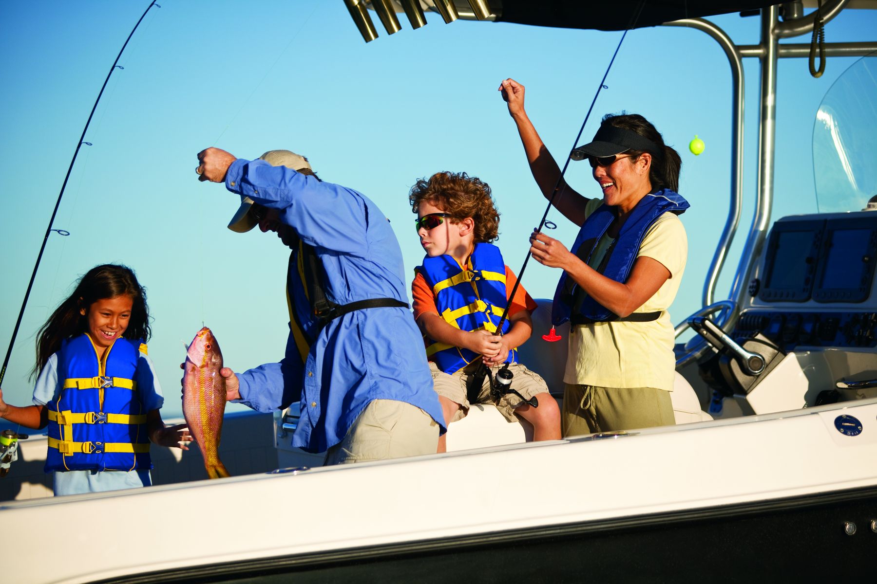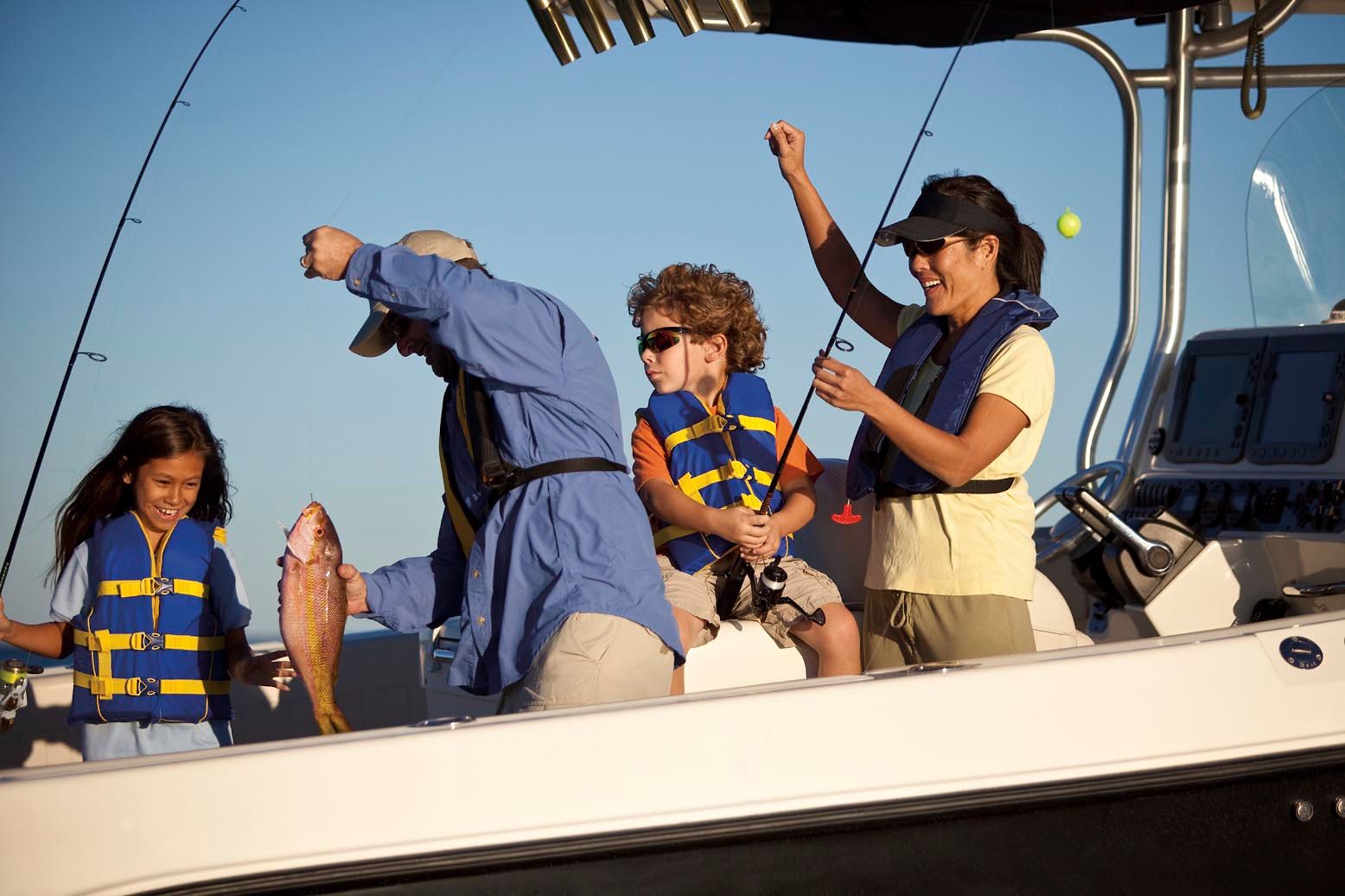 Discover our collection of royalty-free stock images featuring families enjoying the experience of fishing from a boat. These free-to-use photos capture the excitement and togetherness of family fishing trips on the water, showcasing safety practices like wearing USCG approved life vests. Ideal for outdoor adventure promotions, family-friendly recreational content, and boating safety campaigns, this gallery highlights the joy of bonding while fishing from a boat. Use these images to emphasize both the adventure and safety of family fishing outings on the water.