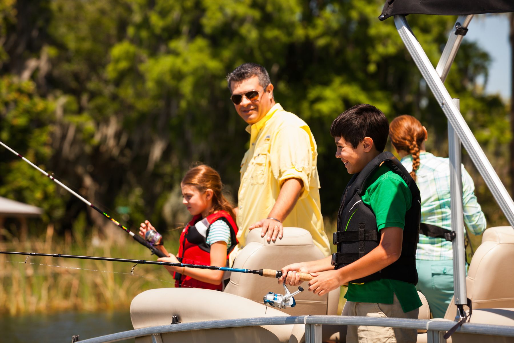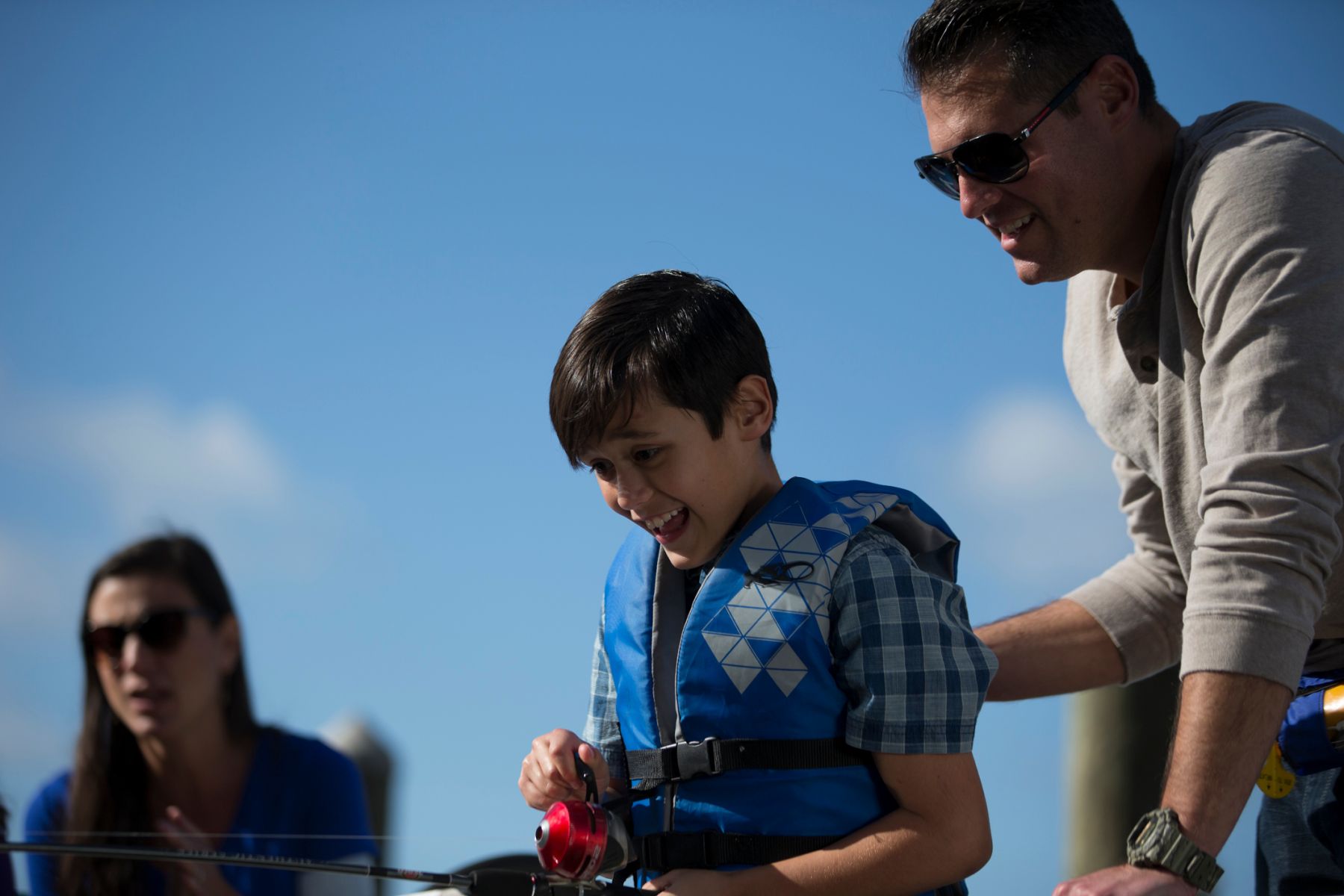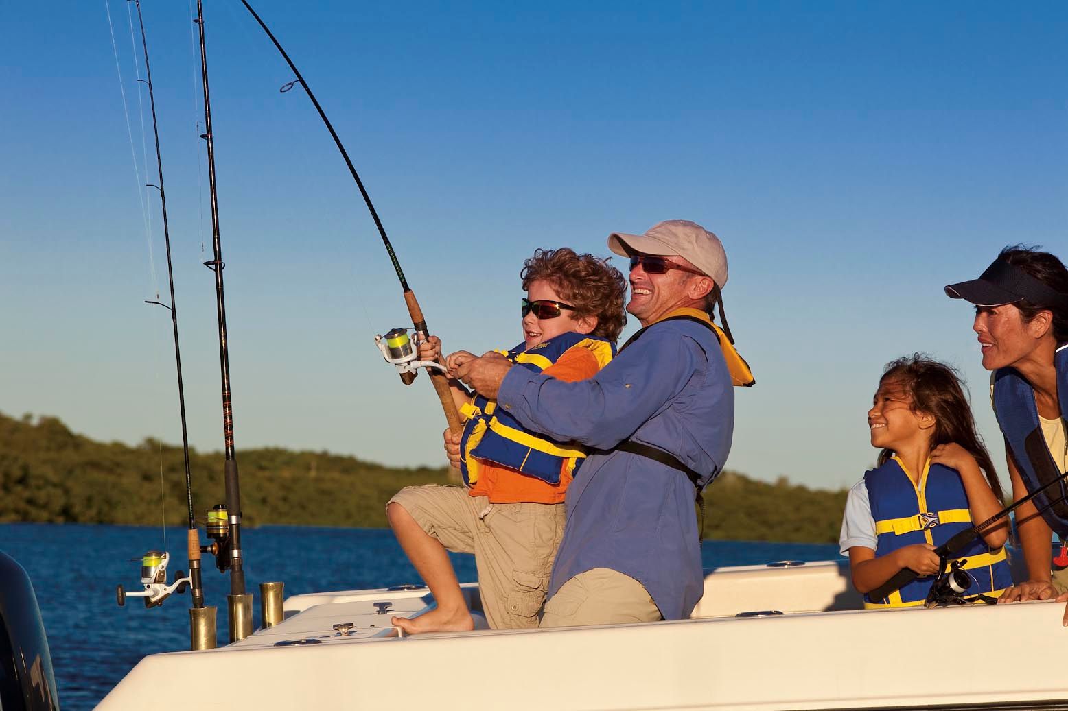 Discover our collection of royalty-free stock images featuring families enjoying the experience of fishing from a boat. These free-to-use photos capture the excitement and togetherness of family fishing trips on the water, showcasing safety practices like wearing USCG approved life vests. Ideal for outdoor adventure promotions, family-friendly recreational content, and boating safety campaigns, this gallery highlights the joy of bonding while fishing from a boat. Use these images to emphasize both the adventure and safety of family fishing outings on the water.
