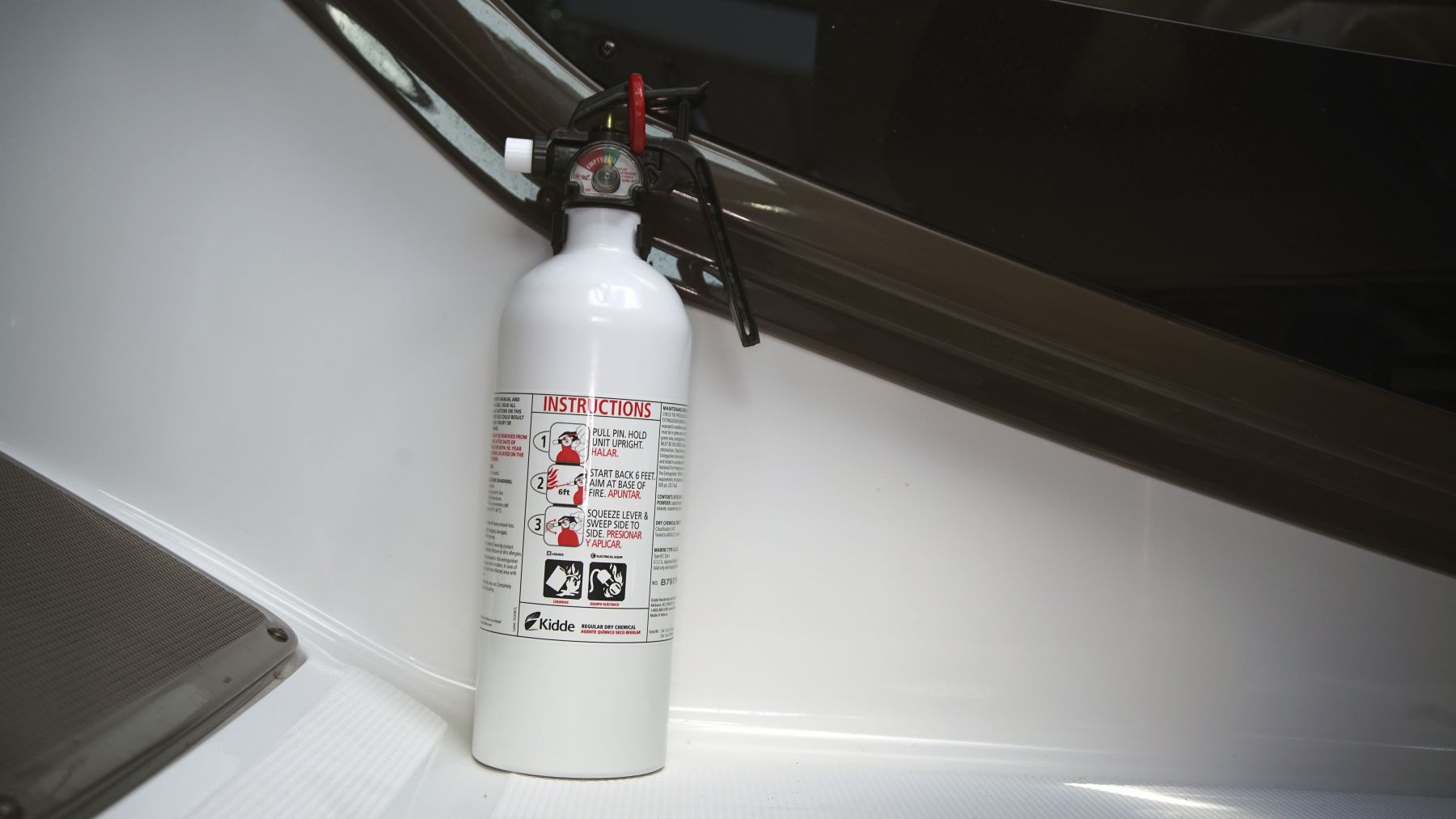 Browse our collection of royalty-free photos featuring mounted fire extinguishers on boats, a key element of onboard safety equipment. These images highlight the proper installation and accessibility of fire extinguishers, crucial for handling potential fire emergencies on the water. Perfect for boating safety websites, instructional materials, and maritime safety campaigns, these photos emphasize the importance of being prepared for fire hazards while boating.