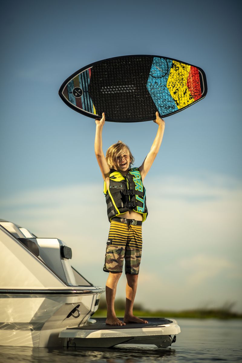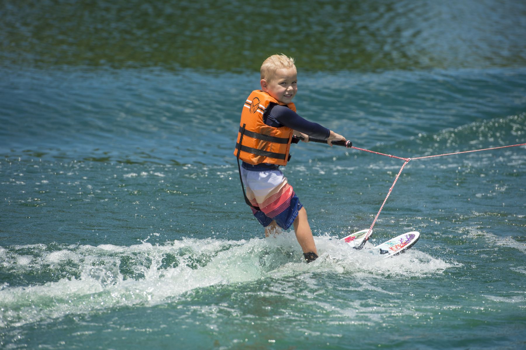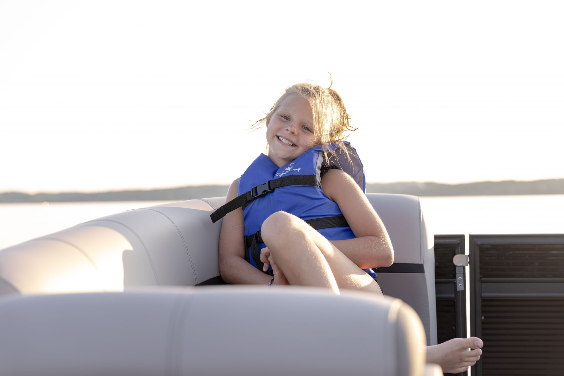 Royalty-free image - A smiling young child wearing an orange life jacket is outdoors near water. Text on the image reads “2024 Recreational Boating Statistics,” published by the U.S. Coast Guard in July 2025.