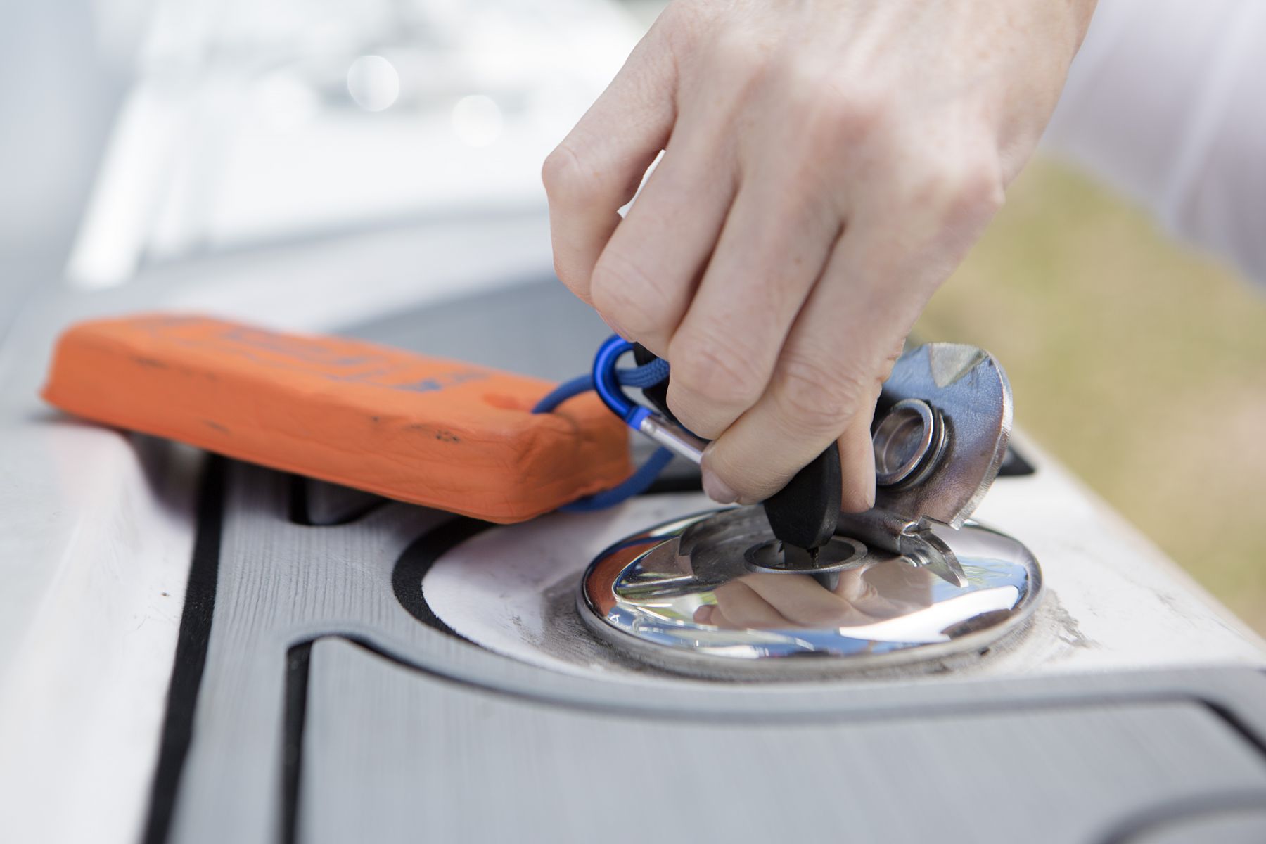 Royalty-free image - A smiling young child wearing an orange life jacket is outdoors near water. Text on the image reads “2024 Recreational Boating Statistics,” published by the U.S. Coast Guard in July 2025.