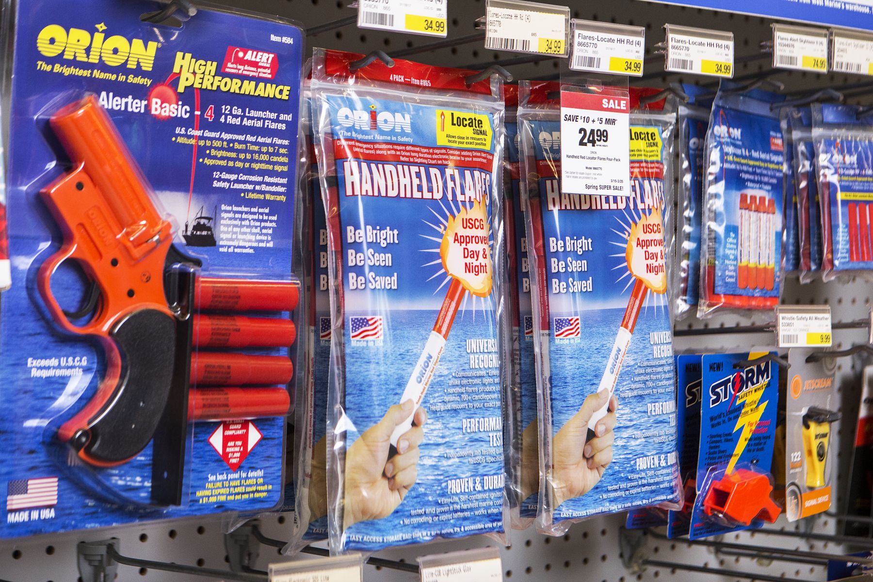 Explore our collection of royalty-free stock images featuring boating safety equipment on display in a retail setting. These free-to-use photos showcase essential safety gear like life jackets, fire extinguishers, flares, and first aid kits available for purchase. Perfect for retail promotions, boating safety campaigns, and product marketing, this gallery highlights the variety of safety equipment necessary for responsible boating. Use these images to promote the importance of equipping vessels with the right gear to ensure safety on the water.